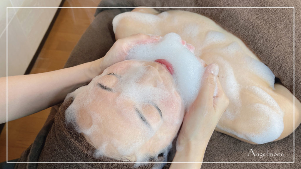 ふわふわの泡でお顔からデコルテまでやさしく洗浄。